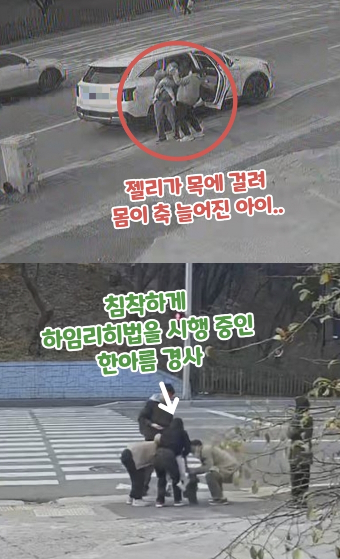 강원 강릉 한 도로를 지나던 경찰관이 젤리 먹다 의식 잃은 아기를 발견하고 응급조치로 구해 화제다.