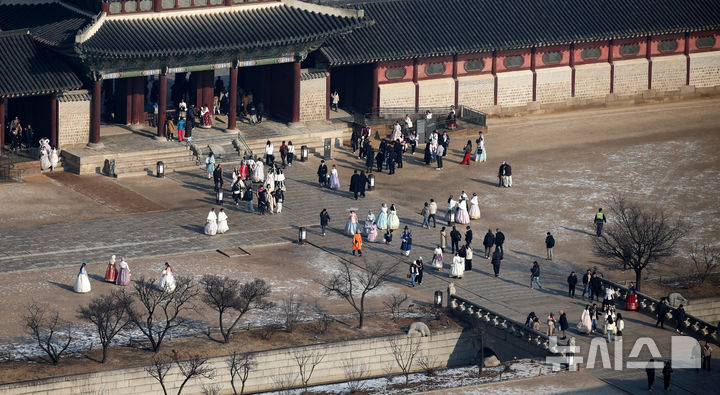 [서울=뉴시스] 추상철 기자 = 절기상 대설, 겨울답지 않은 포근한 날씨를 보인 7일 오후 서울 종로구 경복궁이 관광객으로 붐비고 있다. 2025.12.07. scchoo@newsis.com |