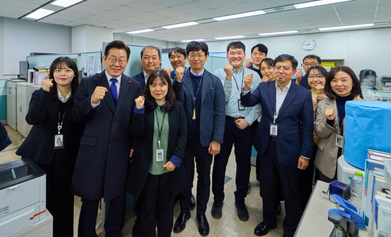 이 대통령은 늦은 시간까지 근무하는 직원들을 격려하고 함께 기념사진을 찍었다.