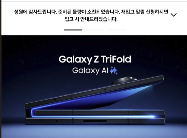 삼성전자의 두 번 접는 스마트폰 ‘갤럭시 Z 트라이폴드’가 17일 오전 10시 진행된 2차 판매에서도 완판을 이어갔다.