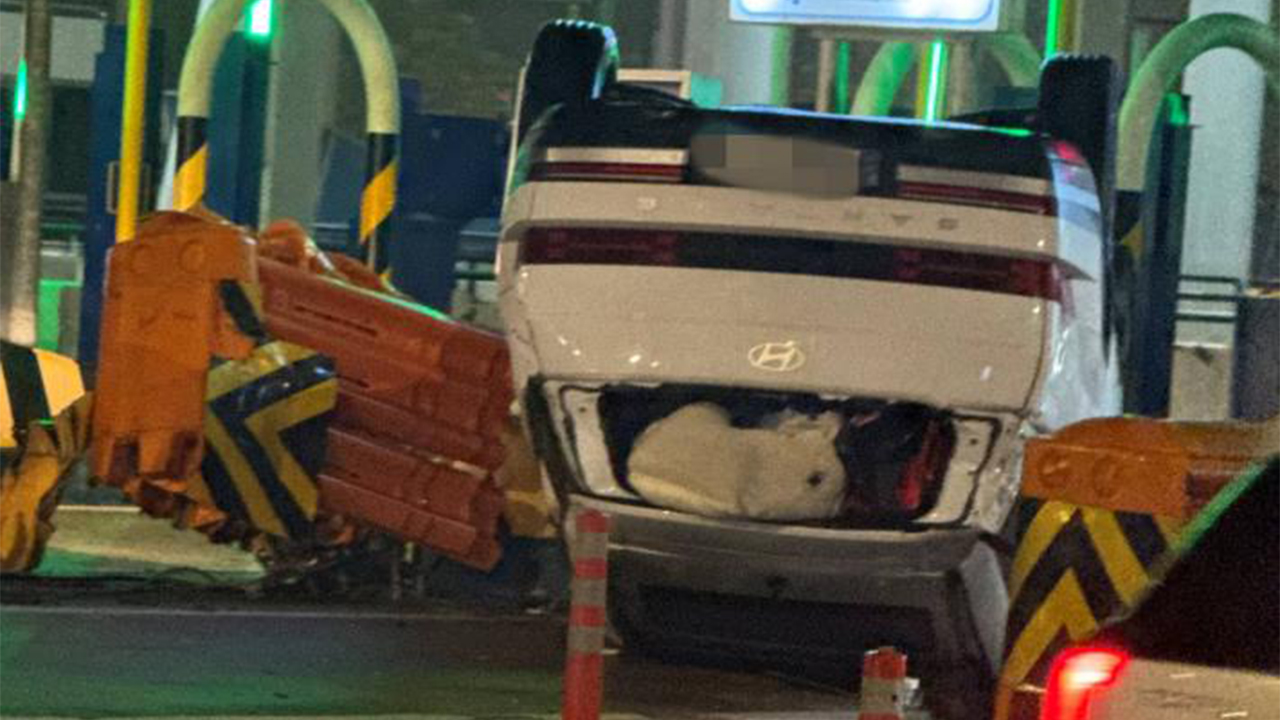 오늘(17일) 오전 3시 57분 인천시 중구 인천대교 공항 방면 요금소에서 A(30)씨가 몰던 스포츠유틸리티차(SUV)가 시설물을 들이받고 전복됐습니다.