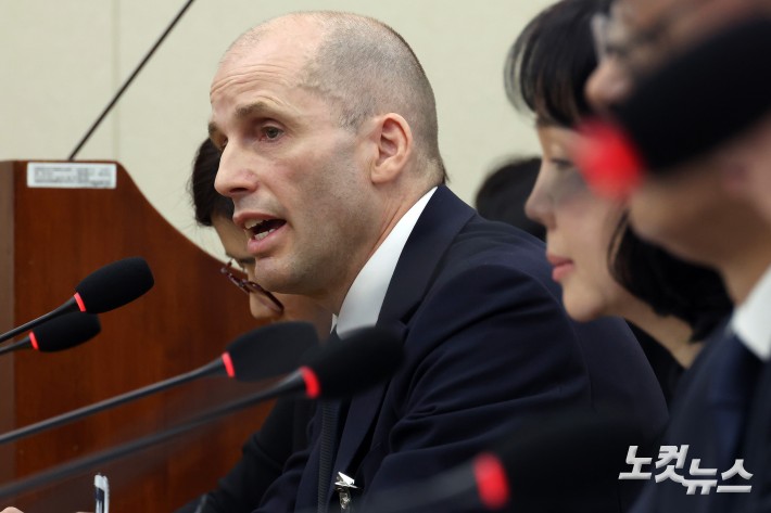 17일 서울 여의도 국회 과학기술정보방송통신위원회에서 열린 쿠팡 침해사고 관련 청문회에서 해롤드 로저스 쿠팡 대표이사가 의원 질의에 답변을 하고 있다.