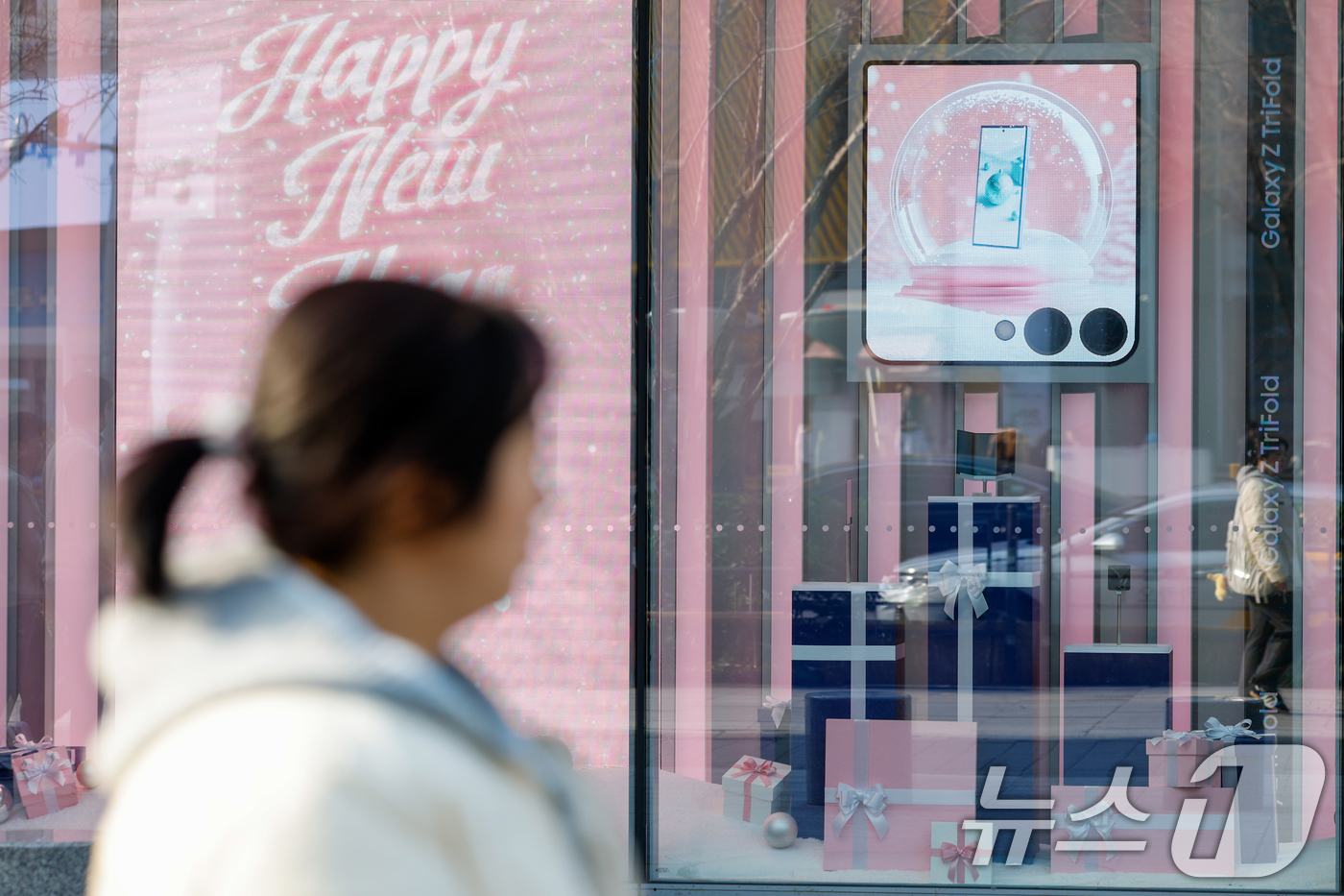 (서울=뉴스1) 안은나 기자 = 삼성전자의 두 번 접는 스마트폰 '갤럭시 Z 트라이폴드' 2차 판매가 시작된 17일 서울 서초구 삼성 강남에 갤럭시 Z 트라이폴드가 진열돼 있다. 2025.12.17/뉴스1