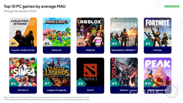 라이브 서비스 타이틀이 PC와 콘솔 모두에서 월간 활성 사용자(MAU) 랭킹을 지배했다. |
