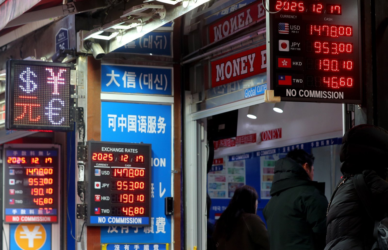[서울=뉴시스] 김혜진 기자 = 원·달러 환율이 장중 1480원을 돌파하며 8개월 만에 최고 수준으로 오른 17일 서울 중구 명동의 한 환전소에 거래 가격이 표시돼 있다. 2025.12.17. jini@newsis.com |
