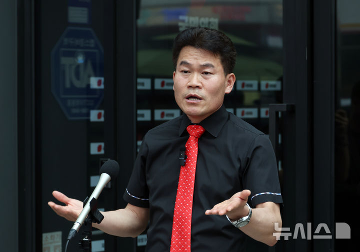 [서울=뉴시스] 고승민 기자 = 대구·경북 전당대회 합동연설회에서 '배신자' 야유를 주도한 전한길 전 한국사 강사가 11일 서울 여의도 국민의힘 당사 로비에서 '김근식 최고위원 후보자 징계요구서'를 당 윤리위에 제출한 후 취재진 질문에 답하고 있다. 2025.08.11. kkssmm99@newsis.com |