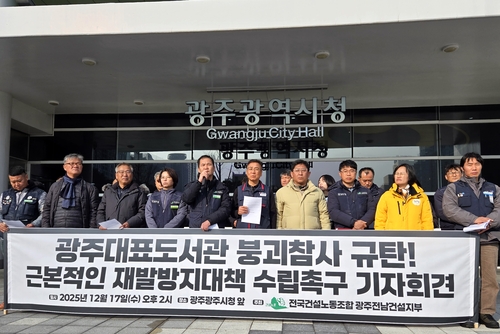 노조는 이날 오후 광주시청 앞에서 기자회견을 열고 "건립 공사 발주처인 광주시가 실질적인 안전 관리 역할을 수행했는지 의문이다"며 이같이 밝혔다.