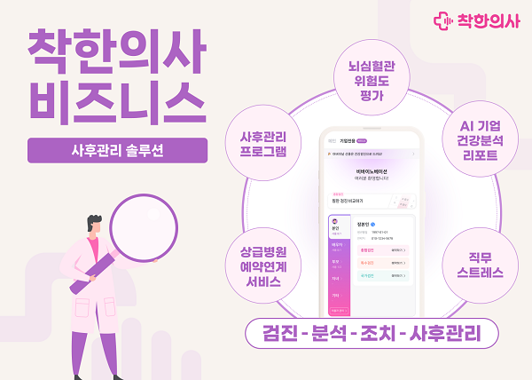 중대재해처벌법은 기업에 임직원의 건강 상태를 지속적으로 확인하고 위험군을 선제적으로 관리할 체계 구축을 요구하고 있다. 착한의사는 이러한 환경 변화에 맞춰 검진 여정뿐 아니라 검진 이후의 모든 관리까지 통합적으로 지원하는 건강경영 플랫폼으로 진화했다.