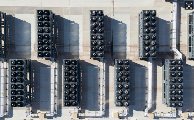 버지니아 애슈번의 디지털리얼리티 데이터센터 지붕에 늘어선 냉각팬들 [사진=연합뉴스] |