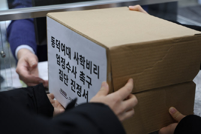 여성의당은 17일 동덕여대 사학비리 수사를 촉구하기 위해 집단 진정서를 서울북부지검에 제출했다.(제공=여성의당) |