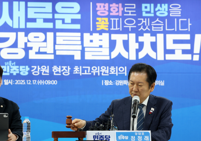 정 대표는 이날 민주당 강원도당 대회의실에서 열린 현장최고위원회의에서 “항간에 대북 주도권을 둘러싼 부처 간 갈등으로 보도되는데 이는 진실이 아니다”라며 “문재인 정부 때 한미 워킹그룹에 대한 우려와 경고”라고 말했다.