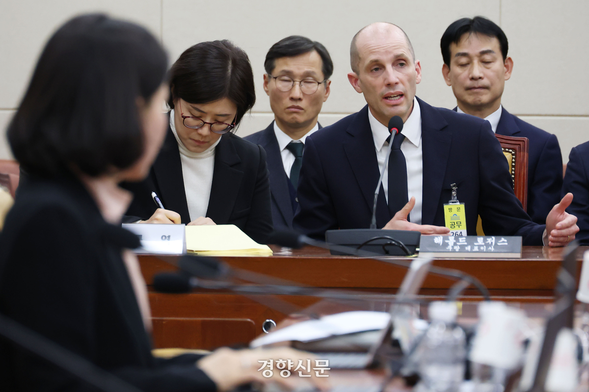 해롤드 로저스 쿠팡 대표이사가 17일 국회 과학기술정보방송통신위원회의 쿠팡 정보유출 사태 청문회에서 여야 의원들 질의에 답하고 있다. 한수빈 기자 |