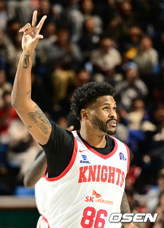 1쿼터 SK 대릴 먼로가 3점슛 세리머니를 하고 있다. 2025.12.17/cej@osen.co.kr