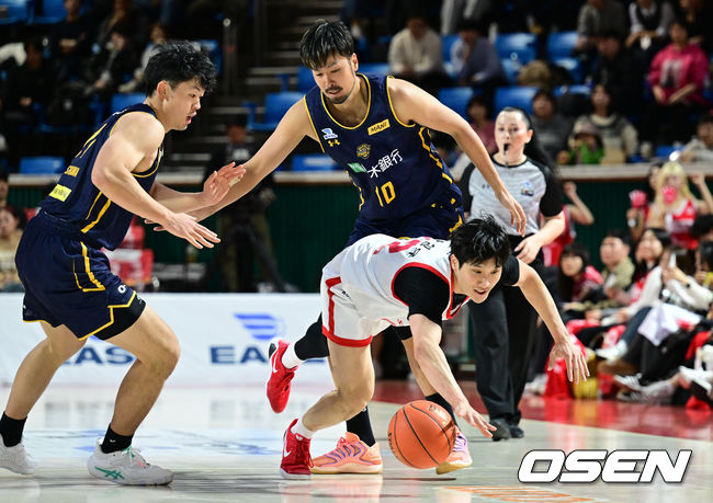 4쿼터 SK 안성우가 상대팀 수비에 넘어지고 있다. 2025.12.17/cej@osen.co.kr