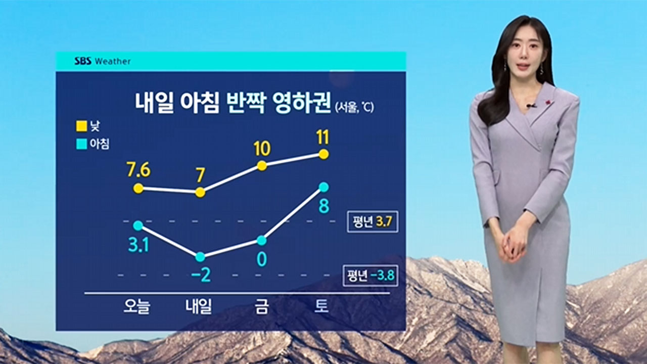 서울이 영하 2도로 오늘보다 5도가량이 낮겠고 낮 기온은 오늘만큼 오르겠습니다.
