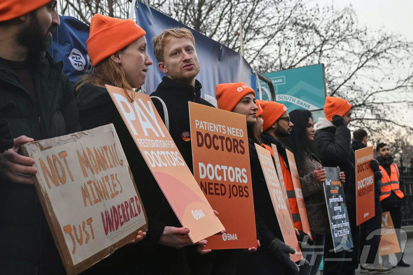 (서울=뉴스1) 권영미 기자 = 영국 잉글랜드에서 의사들이 임금과 근무 환경 개선을 요구하며 17일(현지시간)부터 5일간 파업에 돌입했다. 독감 환자가 급증하는 가운데 정부와의 갈등이 장기화하면서 의료 공백 우려가 커지고 있다.