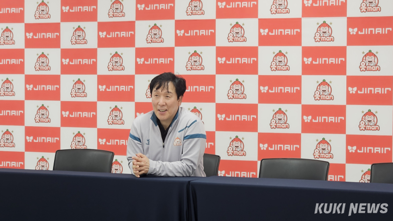 신영철 OK저축은행 감독이 17일 오후 7시 부산 강서체육관에서 열린 우리카드와 진에어 2025-2026 V리그 남자부 3라운드 경기가 끝나고 기자회견에 참석하고 있다. 송한석 기자 |