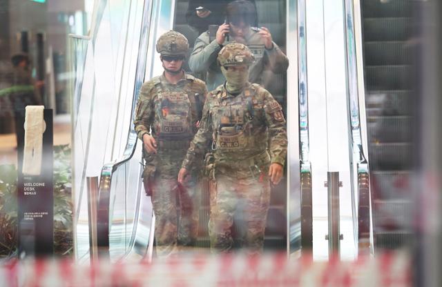 카카오 사옥에 폭발물 설치를 주장하는 협박 글이 또다시 접수돼 경찰이 수색에 나섰다. 사진은 15일 수색작업이 진행 중인 카카오 판교아지트.연합뉴스 |