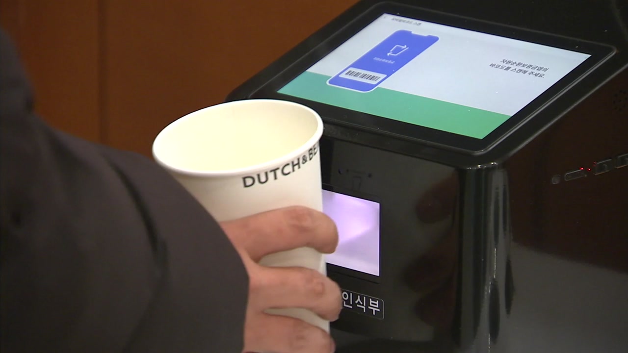 음료를 포장, 즉 '테이크아웃'하면 보증금 3백 원을 내고, 반납하면 돈을 돌려받는 제도입니다.