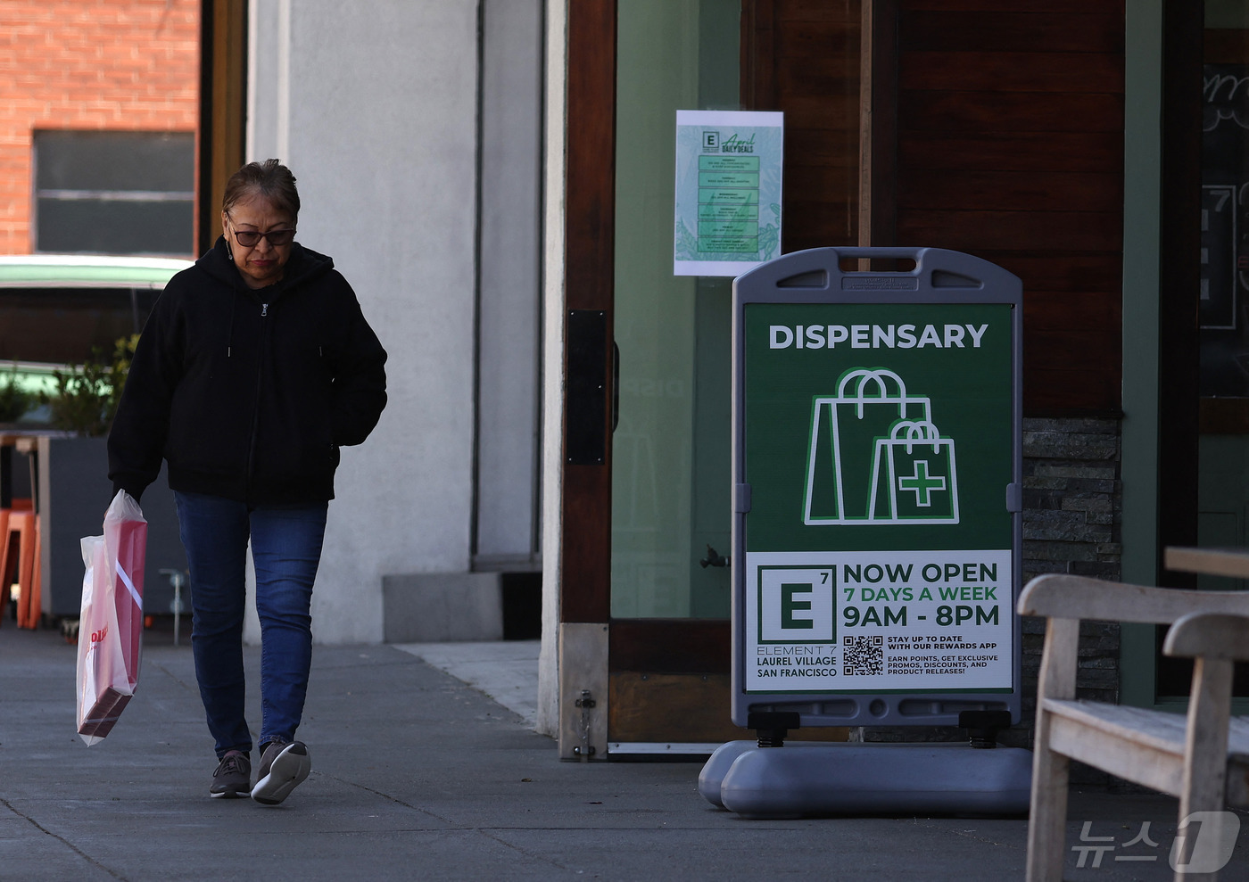 30일(현지시간) 한 행인이 미국 캘리포니아주 샌프란시스코의 대마초 약국 앞을 지나고 있다. 2024.04.30 ⓒ AFP=뉴스1 ⓒ News1 정지윤 기자 |