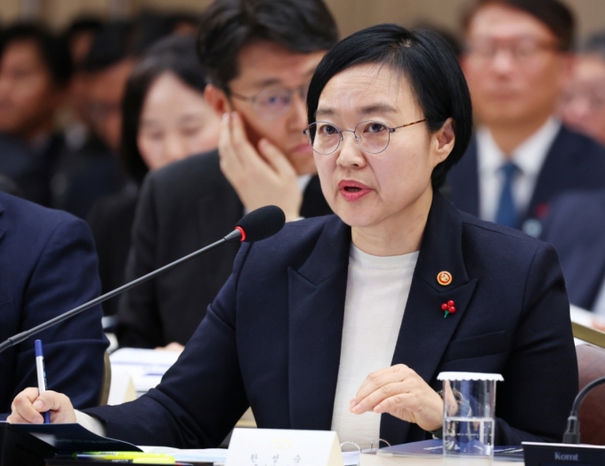 한성숙 중소벤처기업부 장관이 17일 세종시 정부세종컨벤션센터에서 이재명 대통령에게 중소벤처기업부 업무보고를 하고 있다. /사진=대통령실통신사진기자단 |
