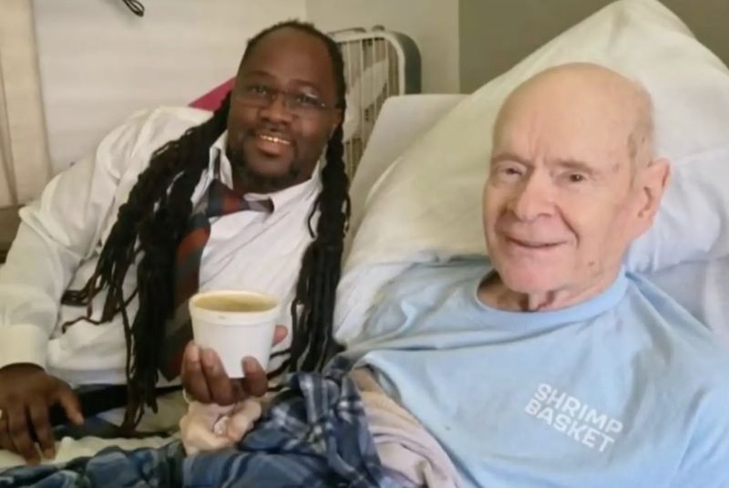 플로리다주 펜사콜라의 식당 ‘쉬림프 바스켓’ 요리사 도넬 스톨워스(왼쪽)과 단골손님 찰리 힉스. 출처=뉴욕포스트