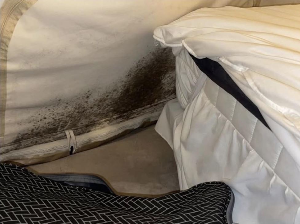 곰팡이로 뒤덮인 글램핑장 사진이 공개되면서 위생 논란이 일었다.