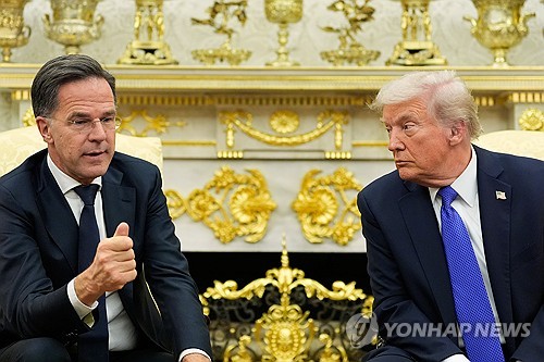 (서울=연합뉴스) 나확진 기자 = 마르크 뤼터 북대서양조약기구(NATO·나토) 사무총장은 나토 회원국들이 국내총생산(GDP)의 5%를 국방비로 지출하기로 약속한 것을 도널드 트럼프 미국 대통령의 "외교정책의 가장 큰 성과"라고 말했다.