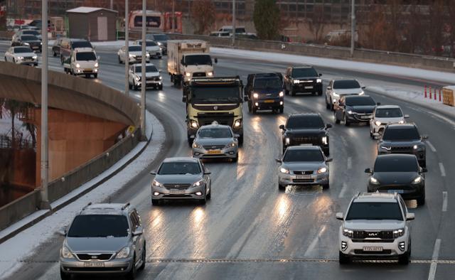 지난 5일 서울 강변북로에서 전날 내린 눈과 낮아진 기온으로 발생한 빙판으로 인해 차량이 서행하고 있다. 해당 사진은 기사 내용과 관련 없음. 뉴시스 |