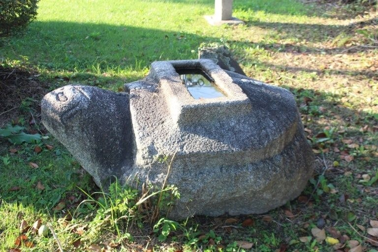 천안삼거리공원 리모델링 공사 중 사라진 귀부(비석받침돌). 사진은 김종식 천안향토문화연구회장이 공사 전에 촬영한 것. |