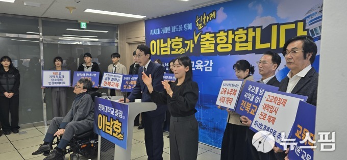 이 전 총장은 "교부금을 배분하는 교육재정의 한계를 넘어 전북교육이 스스로 안정적인 재원을 만들어 가는 구조로 전환하겠다"며 "비가 오기만을 기다리는 '천수답식 재정 운영'으로는 체계적인 교육정책을 펼치기 어렵다"고 비판했다.