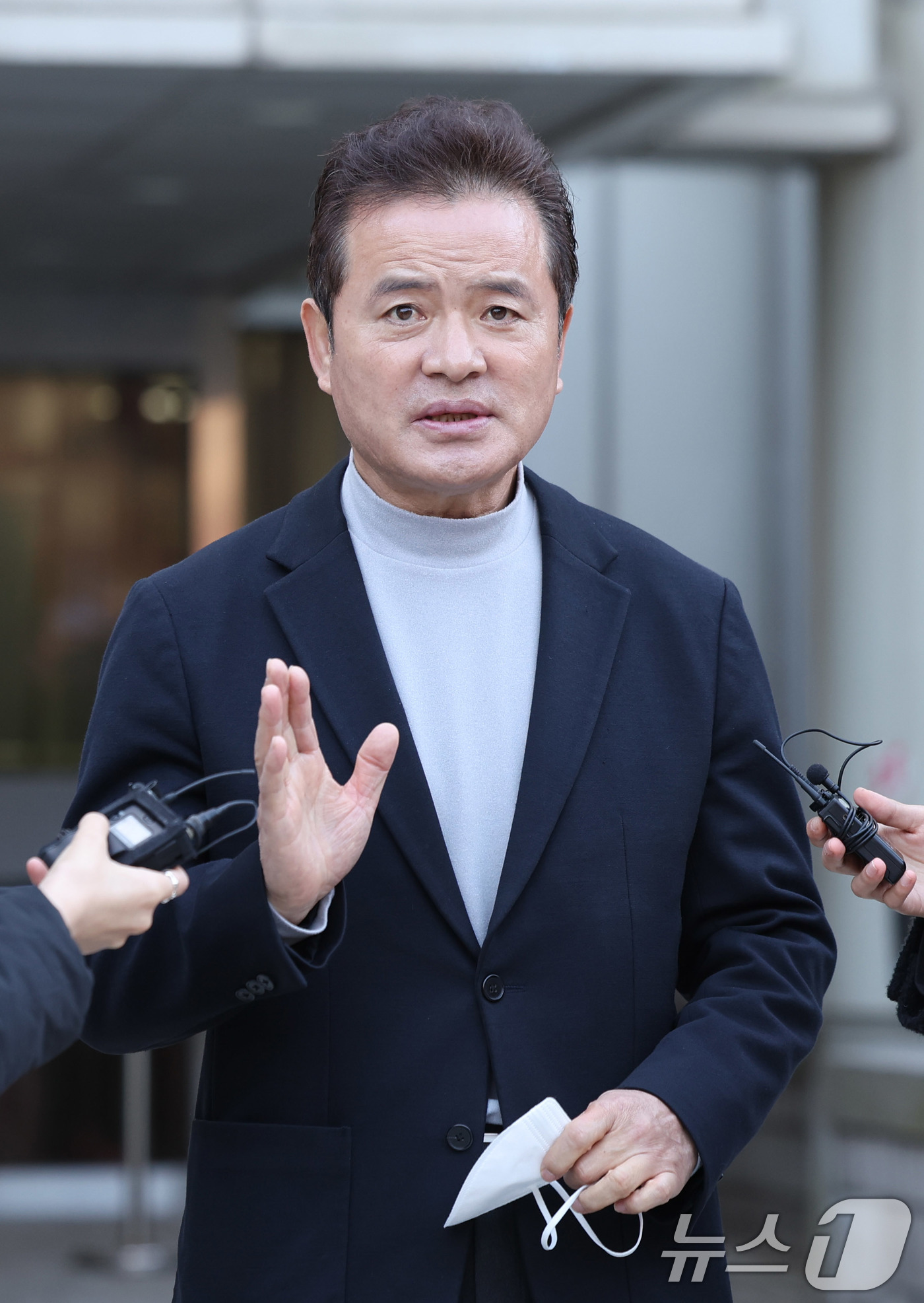 (서울=뉴스1) 박지혜 기자 = 임종성 전 의원이 18일 서울 서초구 서울고법에서 열린 정당법 위반 2심 선고에서 무죄를 선고 받은 뒤 취재진 질문에 답하고 있다. 임 전 의원은 이날 정당법 위반 등 혐의에 대한 항소심에서 무죄를 선고받은 뒤 서울고법을 나서면서 ‘통일교 금품 수수 의혹’ 관련 “그런 적 없다”고 관련 사실을 부인했다. 명품시계 수수 의혹 관련해서도 “시계를 원래 안찬다”고 답하기도 했다. 2025.12.18/뉴스1