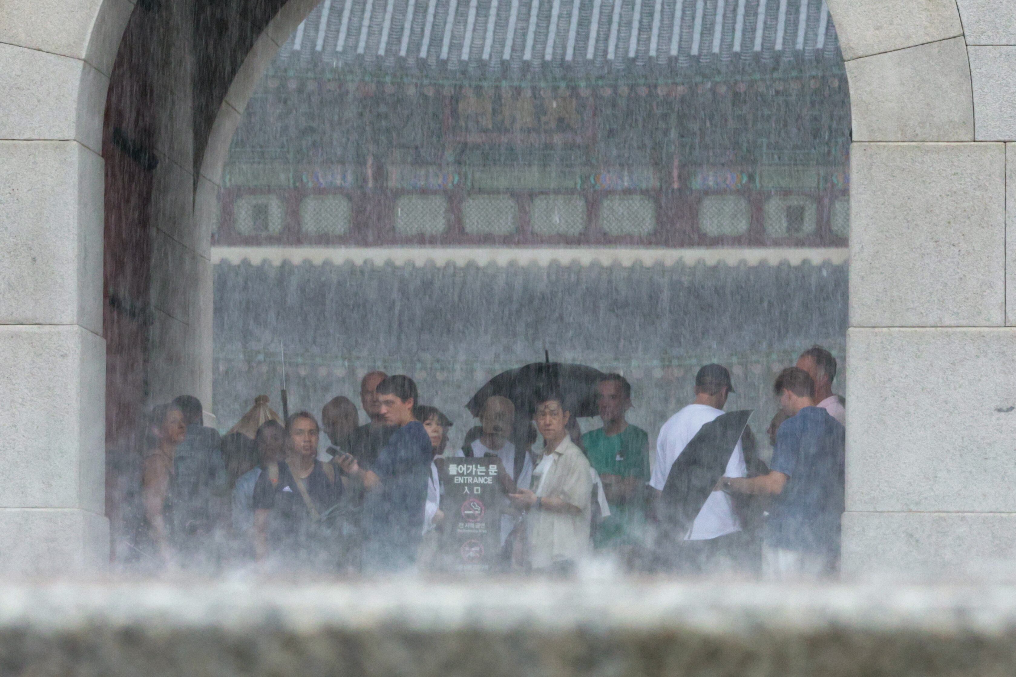 전국 곳곳에 호우 특보가 내려진 지난 8월 6일 오후 서울 경복궁에서 외국인 관광객들이 비를 피하고 있다. /뉴스1 |