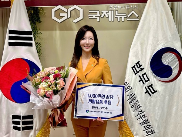 (서울=국제뉴스) 이지영 기자 = 한국법무보호복지공단 서울동부지부(지부장 정순찬)온인주 홍보대사가 지난 11일(목) 플로렌스 위례점에서 개최된 '2025 법무보호복지대회'에서 공로상을 수상하고 1,000만 원 상당의 생활용품을 후원했다.