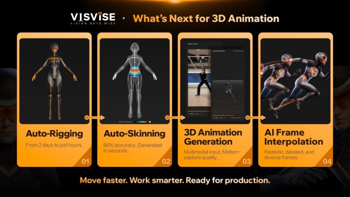 쩡 수석 AI 연구원은 해당 발표에서 다양한 캐릭터 유형의 리그(Rigs)를 생성할 수 있는 업계 최초의 대규모 스켈레톤 생성 모델인 '비스바이스 스켈레톤젠(SkeletonGen) V1.0과 90% 이상의 원클릭 AI 스키닝 자동화율을 자랑하는 ‘비스바이스 스키닝 모델(Skinning Model) V4.5'를 소개했다.