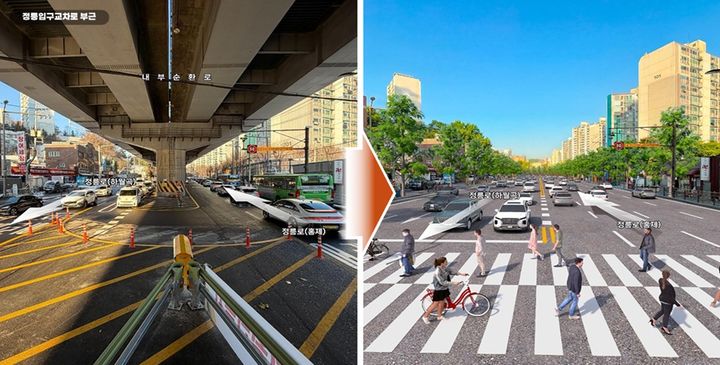 고가도로 철거가 완료되면 상부 공간에는 기존 구조물이 차지하고 있던 공간을 활용해 2차로의 지상 도로를 추가 확보해, 도로 용량이 10% 이상 상승할 전망이다.