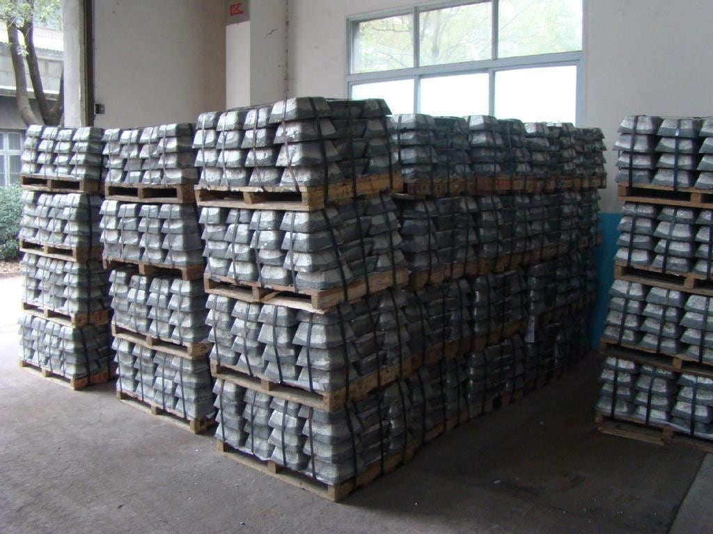 중국 장쑤성의 한 공장에 안티모니 잉곳이 쌓여 있다./첸반창 |