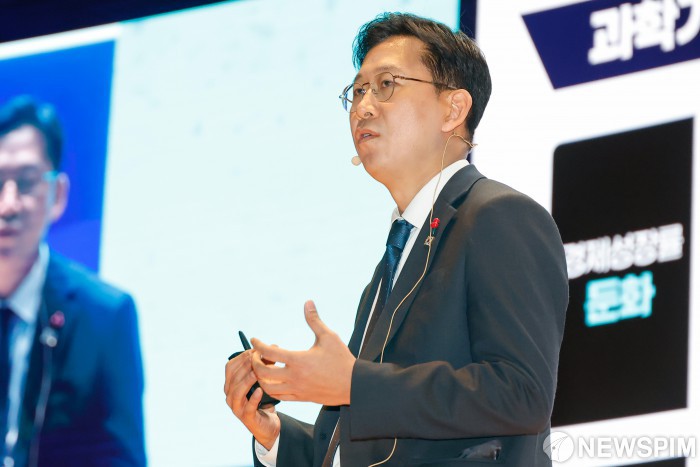 [서울=뉴스핌] 류기찬 기자 = 배경훈 과학기술정보통신부 장관이 18일 오전 서울 강남구 코엑스에서 열린 ‘국가전략기술 SUMMIT 2025’에서 기조연설을 하고 있다. 2025.12.18 ryuchan0925@newspim.com