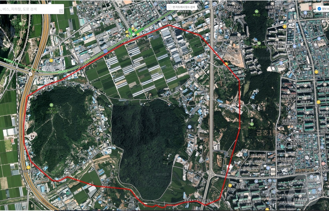 붉은색 선은 광주 서구 금호동·마륵동 '탄약고 제한보호구역'.(금호동 군사보호구역축소위원회 제공) |