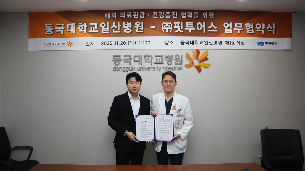 동국대학교일산병원(병원장 백용해)과 의료관광·의료데이터 플랫폼 기업 ㈜핏투어스(대표 채승원)는 해외 의료관광객 유치 및 검진 프로그램 연결을 위한 업무협약(MOU)을 지난 11월 체결했다고 17일 밝혔다.