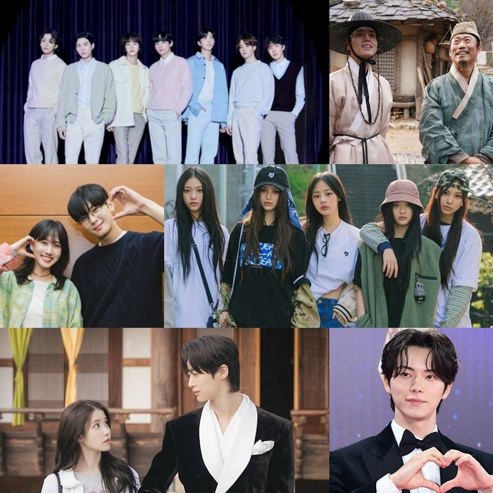 방탄소년단, 박지훈, 유해진, 뉴진스, 이채민, 아이유, 변우석, 박은빈, 차은우(왼쪽 위부터 시계방향). 사진| 빅히트뮤직, 쇼박스, 어도어, 스타투데이 DB, 디즈니+, 넷플릭스 |