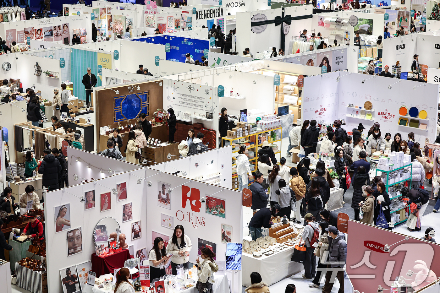 (서울=뉴스1) 김도우 기자 = 18일 서울 강남구 코엑스에서 열린 2025 홈테이블데코페어에서 관람객들이 전시품을 살펴보고 있다. 2025.12.18/뉴스1