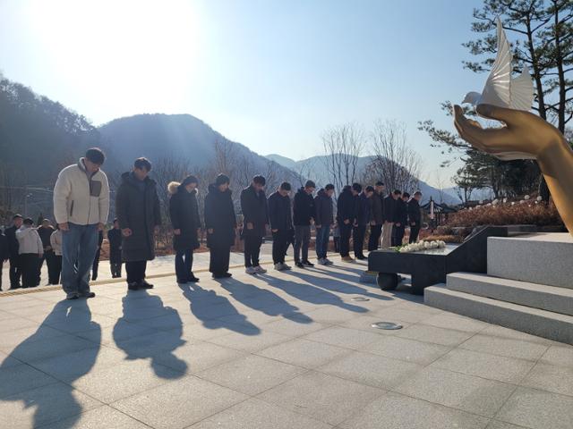 지난 17일 경찰대학 총경급 고위직 교육생 67명이 43년 전 경남 의령 우 순경 사건 희생자들을 기리는 의령4·26추모공원을 찾아 묵념하며 사건의 역사적 의미와 국가 책임을 되새겼다.