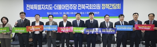 (전주=연합뉴스) 임채두 기자 = 전북특별자치도는 18일 국회에서 더불어민주당 소속 도내 지역구 국회의원들과 현안 논의를 위한 정책간담회를 열었다.