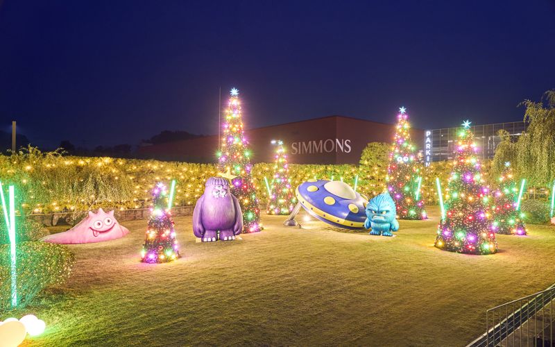 시몬스 테라스를 방문하면 거대한 크리스마스 트리와 화려하게 수놓아진 일루미네이션도 만나볼 수 있다. 올해 행사는 '시몬스 테라스를 점령한 몬스터 파티 플래너' 콘셉트다. 웅장한 트리와 형형색색의 조명, 이색 캐릭터 조형물들을 설치해 관람객의 눈길을 사로잡는다.