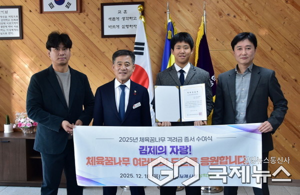 (김제=국제뉴스) 조광엽 기자 = 김제사랑장학재단이 18일 제106회 전국체육대회에서 우수한 성적을 거둔 학생들에게 '체육꿈나무 격려금'을 수여하며, 지역 체육 인재 양성 의지를 다시 확인했다.