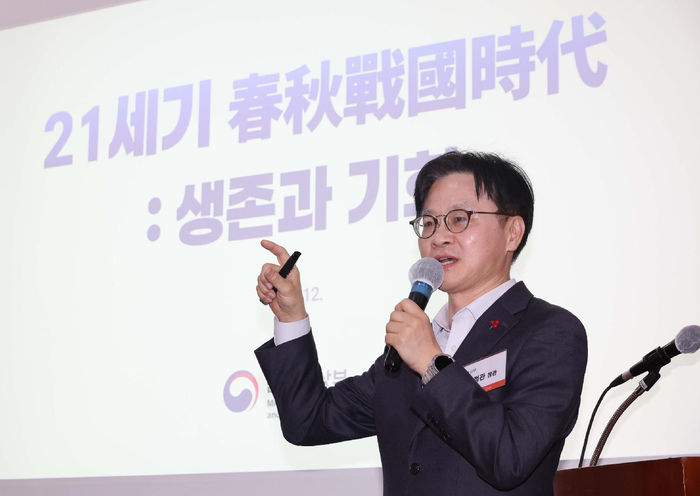 Separately, Kim said the 21st-century trade order resembles another “Warring States” era, marked by weakening U.S. dominance and China’s rise as a new global power. In such an environment of heightened uncertainty and eroding rules, he said Korea must pursue flexible alliances to survive.