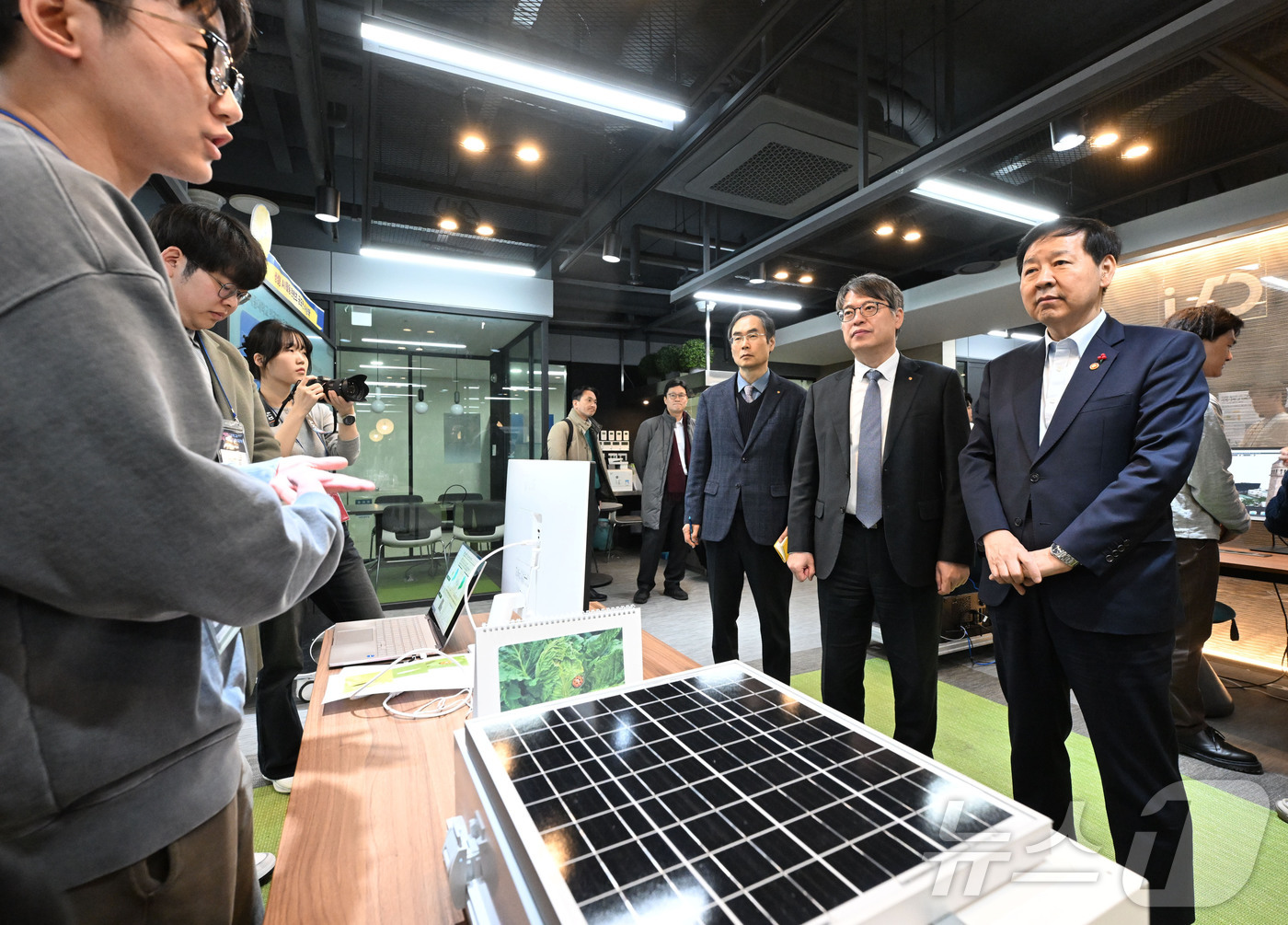 (서울=뉴스1) = 구윤철 부총리 겸 기획재정부 장관이 18일 서울 광진구 세종대학교 인공지능융합대학을 방문, 학생들의 실습현장과 연구과정을 참관하며 설명을 듣고 있다. (기획재정부 제공. 재판매 및 DB 금지) 2025.12.18/뉴스1