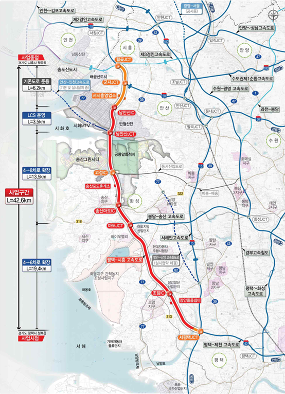 2013년부터 진행된 고속도로 확장이 완료되면 수도권 서남부 지역의 교통정체가 개선될 전망이다. 나아가 인근지역 개발로 증가한 교통 수요와 인천항, 평택당진항의 산업물동량 변화에 선제 대응이 가능할 것으로 기대된다.
