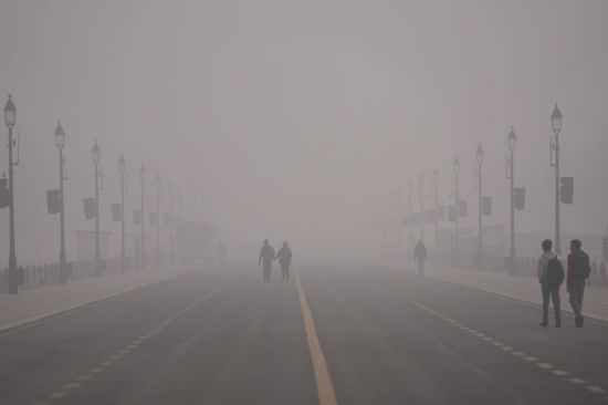 인도 뉴델리에서 시민들이 스모그 속을 걸어가고 있는 모습. AP연합뉴스 |
